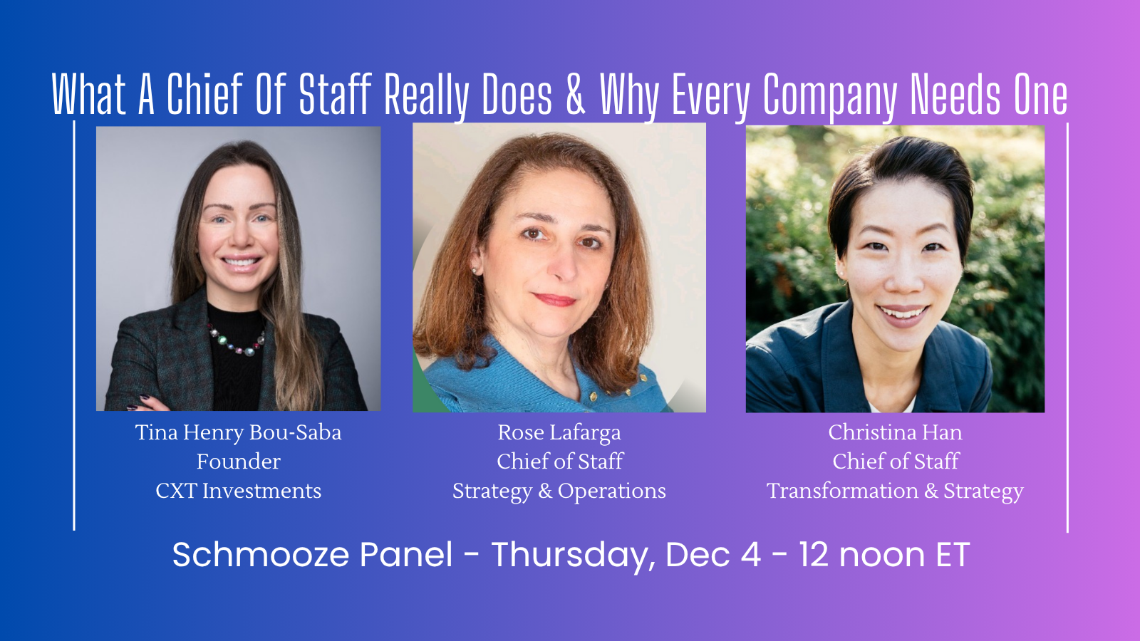 Our panelists will discuss how to hire & then partner with a chief of staff for max impact.